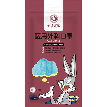 科美丽康 医用外科口罩 一次性医用防护外科口罩 成人蓝色口罩 无菌平面耳挂式口罩 10只/袋